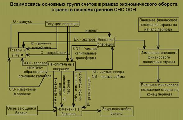 Взаимосвязи основных групп счетов в рамках экономического оборота страны схематично можно представить на рис.2.