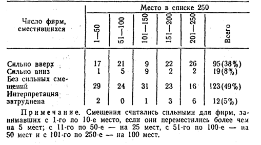 Таблица 5 Изменение места компании в 1987 г. по сравнению с 1969 г. в списке 250 крупнейших корпораций США