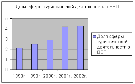 В 2002 году удельный вес экспорта туристских услуг в общем объеме экспорта услуг составил 25,8 процента (в 1998г. – 13,4 процентов).[24]