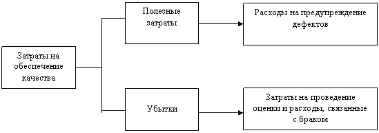 Недостатки такой классификации затрат проанализированы японскими специалистами [5], которые предлагают в ее основу положить принцип полезности затрат, разделив их на две категории: расходы на проведение работ по обеспечению качество и убытки, вызванные неудовлетворительной деятельностью в области качества (схема 2).