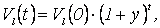 Следующим шагом следует оценить эффект увеличения полной (общественной) ценности блага, ограниченного в возможностях воспроизводства, в зависимости от роста общественного потребительского «бюджета», который может быть оценен по общему объёму потребления традиционной конечной экономической продукции. При предположении темпа роста ВНП равным y, а нормы общественного потребления постоянной во времени можно получить тенденцию роста ценности неконкурентного блага, ограниченного в возможностях воспроизводства вида