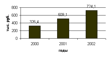 Рис.2.4. Динамика среднегодовой производительности труда в ООО «ХХХХХХХХХХ» за 2000-2002 гг.