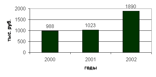 Рост данного показателя на 121,9% или 397,7 тыс. руб. свидетельствует о росте эффективности использования трудовых ресурсов в организации за 2000-2002 гг.