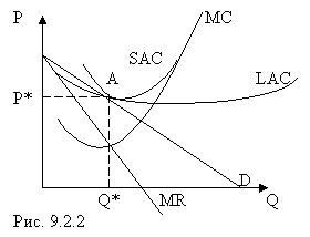 Кривая «D» - касательная к LAC. Фирмы получают только нормальную прибыль.