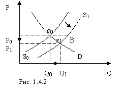 Предположим, что в результате применения новых машин сократились издержки производства у производителей и, как следствие, возросло предложение товара Q на рынке.