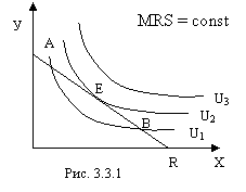 В точке (Е) MRS равно обратному соотношению цен товаров: MRSху = Рх/Ру.