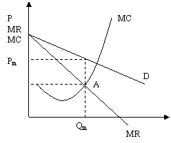 Объем выпуска (Qm), максимизирующий прибыль монополиста, определяется правилом: MR = MС. Затем устанавливается цена (Рm).