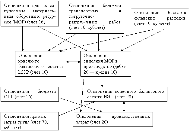 Рис. 5. Взаимосвязь отклонений в системе комплексного, нормативного учета