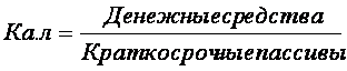 Коэффициент абсолютной ликвидности ( К а.л.) рассчитывается по формуле