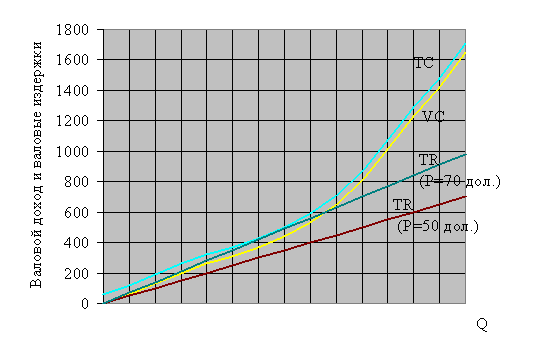 Рис. 6. Валовой доход и валовые издержки. Случаи минимизации издержек и закрытия фирмы.