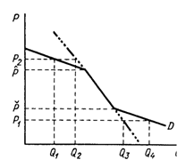 Неизменность цены можно объяснить, если отдельные фирмы считают, что их соперники не последуют за любым приростом цены. В то же время они предполагают, что те последуют за любым снижением их цены. При этих обстоятельствах кривая спроса, как ее воспринимает каждая отдельная фирма, имеет странную форму.