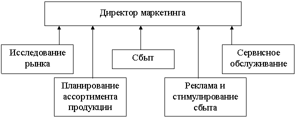 Функциональная организация службы маркетинга предполагает, что ответственность за исполнение каждой функциональной задачи возлагается на отдельное подразделение.