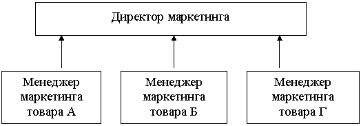 При этом по каждому товару имеется свой управляющий, с подразделением сотрудников, выполняющих все функциональные задачи маркетинга.