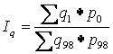 Iq01 = (1650 *5350 + 1850 * 4200 + 22500) / 16870650 = 98,51%