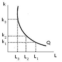 Производственные функции для различных объемов производства представляют семейством изоквант (рис. 1.4). Чем выше расположена изокванта, тем большие затраты ресурсов она отражает, тем больший выпуск она представляет. Поэтому Q3>Q2>Q1