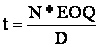 Система с фиксированным интервалом времени между заказами предполагает размещение заказов на восполнение запасов с заданной периодичностью. Определить интервал времени между заказами можно с учетом оптимального размера заказа (EOQ). Для расчета интервала времени между заказами (время потребления заказа) используют формулу: