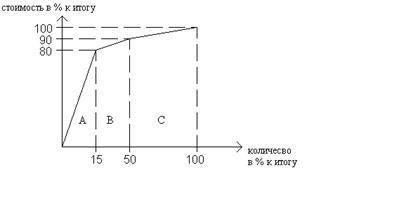 Таким образом, 15 % деталей составляют 80 % стоимости (группа А), 35 % – 15 % (группа В), 50 % -5 % (группа С).