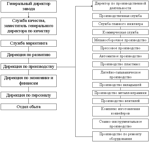 Таким образом в функциональном подчинении службы качества находятся: служба маркетинга, дирекция по развитию, дирекция по производству, дирекция по экономике и финансам, дирекция по персоналу, отдел сбыта.