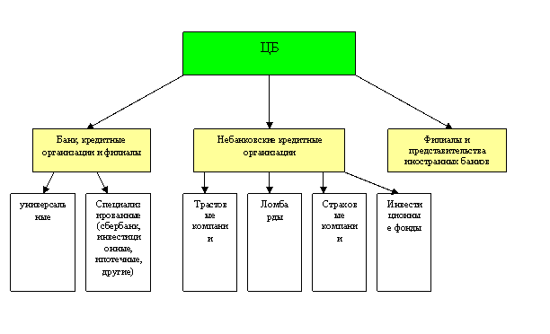 ЦБ является главным звеном любой банковской системы. В современных условиях ЦБ это прежде всего посредник между государством и остальной экономикой, призванный регулировать денежно-кредитные потоки с помощью инструментов закрепленных за ним в законодательном порядке. УК ЦБ РФ составляет более 3 миллиардов рублей. Председатель банка назначается на должность Госдумой сроком на 4 года и не более 3 сроков подряд. Высшим органом банка России является совет директоров. Это коллегиальный орган в который входят председатель банка России и 12 членов совета. Совет определяет основные направления деятельности банка, осуществляет руководство и управление. В настоящее время в структуре ЦБ функционируют 23 департамента и 3 службы.