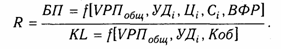 Аналогично осуществляется факторный анализ рентабельности совокупного капитала. Балансовая сумма при были зависит от объема реализованной продукции (VРП), ее структура (УД), себестоимости (С), среднего уровня цен (Ц) и финансовых результатов от прочих видов деятельности, не связанных с реализацией продукции и услуг (ВФР).