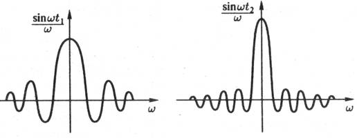 На рис.1 отражены графики зависимости sin(ώt)/ώ от ώ
