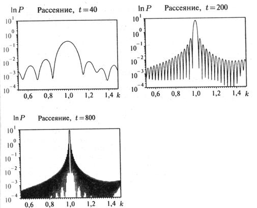 Полученные заключения могут быть подтверждены моделированием вероятности Р как функции от k при возрастающих значениях t. Графики приведены на рис.5[5, 241].