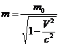 где m0 — масса покоя; V — скорость тела; с — скорость света в вакууме. Если ввести ограничение, то есть допустить, что скорость тела слишком мала по сравнению со скоростью света, то величиной