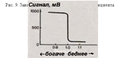 Коэффициент избыточности воздуха при работе двигателя постоянно меняется и диапазон 0,9 - 1,1 является рабочим диапазоном лямбда-регулирования. В то же время, когда двигатель прогрет до рабочей температуры и не развивает большой мощности (например, работает на холостом ходу), необходимо по возможности более строгое соблюдение равенства