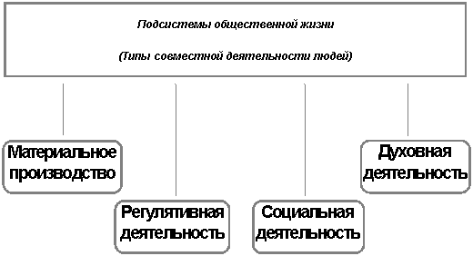 Идея первенства объективных потребностей перед отражающим их сознанием последовательно проводится К. Марксом. Поэтому в основе выделения подсистем общества у него оказываются не важнейшие идеи (добро, справедливость, Красота,–у П. Сорокина ), а важнейшие потребности общества в продуктах материального и духовного производства, производства непосредственно человеческой жизни и “форм общения“ людей, т.е. общественных отношений. Практическое в жизни общества определяет духовное. Но и в самой практике Маркс выделяет определяющую форму деятельности–материальное производство, которое тем самым становится основой функционирования и развития общества в целом.