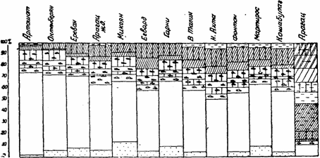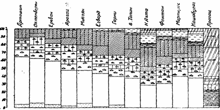 Количество осадков в январе в среднем достигает 20—40 мм. Очень часты туманы, число дней с туманом колеблется в пределах от 4 до 17. Максимум туманов приурочен к высокогорной зоне и наблюдается в феврале и марте. Число дней с метелью резко растет с высотою. Если в Араратской равнине в январе составляет в среднем —2 дня, то на Арагаце в/г число дней увеличивается до 15. В высокогорной зоне максимум метелей бывает в марте.