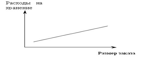 Расходы по хранению растут прямо пропорционально размеру заказа. Эта зависимость графически представлена на рис. 4.