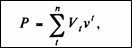 операций является ставка сложных процентов, то анализ операции с позиции банка заключается в расчете этой ставки, эквивалентной учетной ставке d, примененной при учете комплекта из п векселей с последовательными сроками погашения. Итак, имеется п векселей, которые учитываются по ставкам d. Необходимо найти эквивалентную ставку наращения g, т.е. ставку, которая обеспечила бы тот же доход от инвестиций, равный сумме, которую получит продавец. Пусть банк выплачивает последнему сумму, равную Р. По определению при условии, что Р и Vt сбалансированы, можно написать: