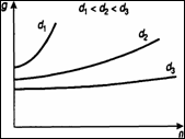 Рост учетной ставки, естественно, оказывает положительное влияние на g, С увеличением п величина g также растет. На рис. 4 показана зависимость g от указанных двух факторов. Заметим также, что максимальное значение п равно 1/d. Тогда g становится бесконечным.