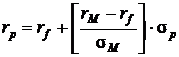 Наклон CML равен разнице между ожидаемой доходностью рыночного портфеля и безрисковой бумаги (rM – rf), деленной на разницу их рисков (sM – 0), или (rM – rf)/sM . Так как CML пересекает вертикальную ось в точке с координатами (0, rf), то уравнение CML имеет вид: