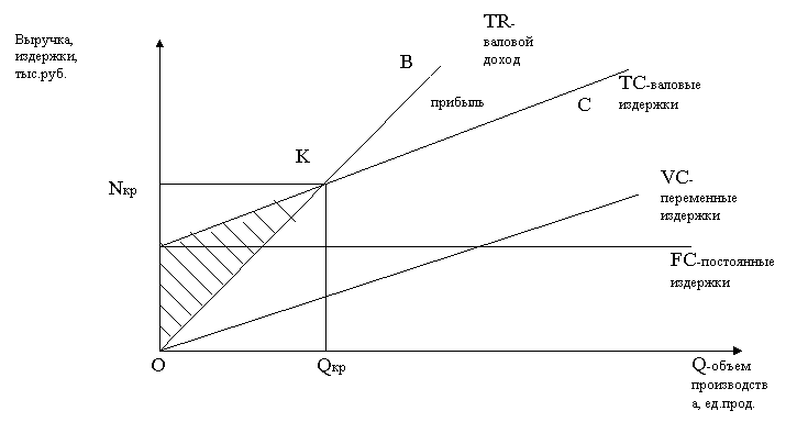 На практике для предприятия, функционирующего на рынке, необходимо знать не только, что оно получит прибыль, но и когда оно ее получит. Для этого проводится специальный анализ соотношений между объемом производства, затратами и доходом. Процесс нахождения безубыточности можно проследить: