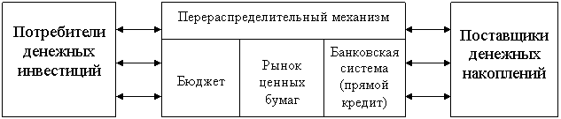 В рыночной экономике рынок ценных бумаг является основным способом перераспределения денежных накоплений. Таким образом, фондовый рынок создает условия для свободного, хотя и регулируемого, перелива капиталов в наиболее эффективные отрасли хозяйствования (см. схему).