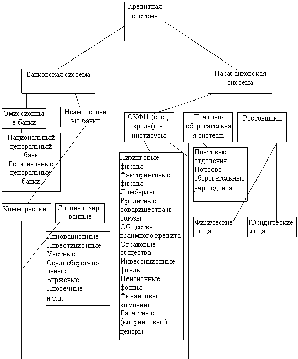 Иерархичность структуры составляющих кредитную систему элементов заключается в выделении центрального управляющего звена и низовых (функциональных) звеньев.