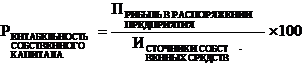 Инвесторы капитала (акционеры) вкладывают в предприятие свои средства с целью получения прибыли от этих инвестиций, поэтому, с точки зрения акционеров, наилучшей оценкой результатов хозяйственной деятельности является наличие прибыли на вложенный капитал. Показатель прибыли на вложенный капитал, называемый также рентабельностью собственного капитала, определяется по формуле: