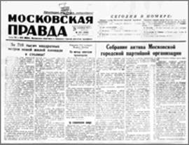 Еще одно изменение, причем принципиальное, произошло 1 февраля 1958 года. С этого дня газета, сохранив прежнее название, становится сугубо городской (Прежде в сфере ее влияния были и Москва, и Московская область, причем в первые годы Советской власти Московская область включала в себя территории, которые затем были выделены в отдельные, самостоятельные области. Теперь же прежняя "Московская правда" разделилась надвое: городскую - с прежним названием - и областную - "Ленинское знамя".)