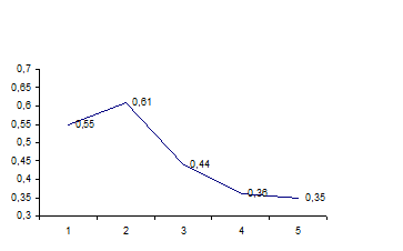 Исходя из данных таблицы 4 и рисунка 5 можно сделать вывод о неудовлетворительной структуре баланса и отнести данное предприятие к неплатежеспособным. Но такое заключение часто является спорным, так как нет серьезных обоснований того, что нормативное значение коэффициента текущей ликвидности должно быть равно двум. К тому же, как показали обследования различных предприятий, 80 % из них можно объявить неплатежеспособными. Следовательно, критерии неплатежеспособности предприятия определены без учета действия независящих от предприятия факторов, связанных с кризисным состоянием экономики.