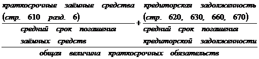 Нормальное ограничение Ка.л.³ 0,2,распространенное в экономической литературе, означает, что каждый день подлежат погашению 20% краткосрочных обязательств предприятия или, другими словами, в случае поддержания остатка денежных средств на уровне отчетной даты (преимущественно за счет обеспечения равномерного поступления платежей от контрагентов) краткосрочная задолженность, имеющая место на отчетную дату, может быть погашена за 5 дней (1:0,2). Учитывая неоднородную структуру сроков погашения задолженности, данный норматив следует считать завышенным. Для получения более реалистичного нормального ограничения необходимо на основе данных аналитического учета определить средний срок погашения кредитов и средний срок погашения кредиторской задолженности. Тогда коэффициент абсолютной ликвидности должен быть не меньше величины