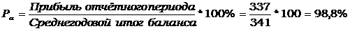 Для исчисления этого показателя прибыль отчётного периода или чистая прибыль, или прибыль от реализации продукции делится на общий итог баланса. Стоимость имущества определяется как средняя величина.
