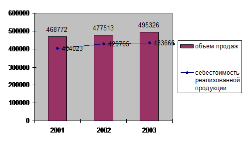 Рисунок 1.3. Динамика объема продаж и себестоимости реализованной продукции.