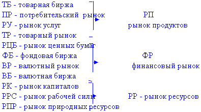 Предметом ТР является продажа средств производства. ПР - предметы потребления. РУ - индустрия услуг(коммунальные услуги, услуги связи). ТБ - посредник, связывающий товаропроизводителей и товаропотребителей путем проведения аукционов. РЦБ - совокупность экономических отношений, которая взаимосвязывает покупателей и продавцов по поводу приобретения доли собственности или долговых обязательствю ФБ является посредником между покупателями и продавцами ценных бумаг путем так называемой котировки ценных бумаг. ВР - рынок на котором производится торговля иностранной валютой. ВБ увязывает интересы покупателей и продавцов валюты. Инструментарий финансового рынка: