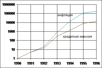 Как видно из рисунка 5, в Беларуси существует высокая степень взаимозависимости между расширением кредитной массы и инфляцией. Интересно отметить: ряд людей в Беларуси заявляют, что расширение кредитной массы потребовалось для компенсации инфляции предприятиям, а предоставление новых кредитов было необходимо для восстановления оборотного капитала, чтобы предприятия продолжали работать. Проект "Программы социально–экономического развития Беларуси в 1996–2000 годах" ("План развития"), утвержденный президентом в сентябре 1996 года, открыто призывает к проведению более либеральной монетарной и кредитной политики для стимулирования экономического роста. Однако мировой опыт ясно указывает на то, что расширение кредитной массы является причиной инфляции, а не ее результатом.