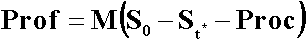 прибыли/ убытки, полученные спекулянтом по окончании сделки в момент времени t*: