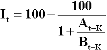 где At-K - среднее значение закрывшихся выше предыдущих цен за K дней, Bt-K - среднее значение закрывшихся ниже предыдущих цен за K дней. Обычно задается K=14. Сигнал о продаже формируется при превышении осциллятором уровня 70, а сигнал о покупке - при понижении за уровень 30.