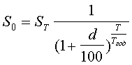 Для определения учетной ставки, дающей эквивалентный результат к математическому дисконтированию, достаточно приравнять современные величины при обоих способах дисконтирования и при одинаковой конечной сумме капитала и найти учетную ставку из возникшего уравнения. Для дисконтирования при сложной процентной ставке используется формула