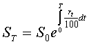 при начислении процентов m раз в году. В теоретических финансовых расчетах часто используется непрерывное начисление процентов. При этом годовая процентная ставка r называется силой роста и может задаваться как постоянной, так и зависящей от времени. Выплаты при переменной силе роста расчитываются по формуле