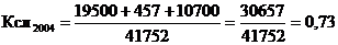 Для России значение этого показателя признается достаточным на уровне 0,7-0,8. В нашем случае значение данного показателя, как на начало, так и на конец 2004 года в пределах нормы. Это означает, что при условии своевременных поступлений средств от дебиторов и заемщиков предприятие сможет расплатиться по своей краткосрочной задолженности.